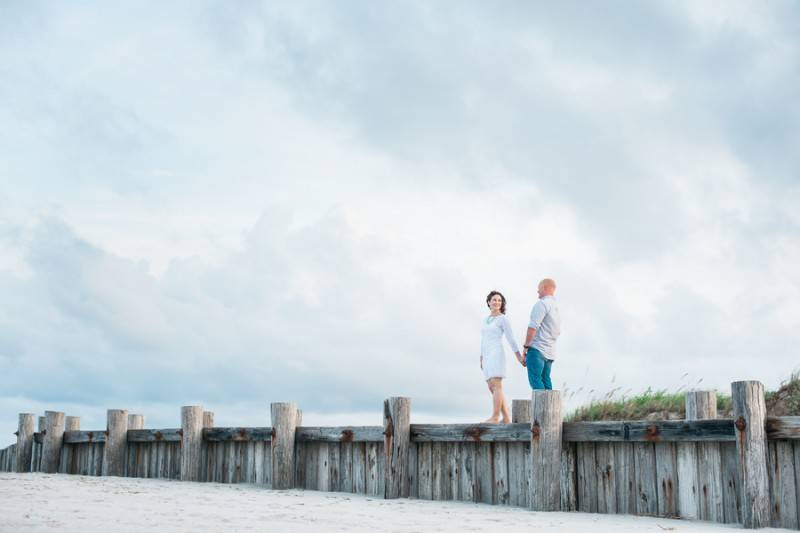 My fiance and I met at church during the winter of 2014. We randomly started talking one day and became friends. (Caveat: he was dating someone at the time.) After his relationship ended several months later, a mutual friend stepped into action. She must have picked up on something as she kept encouraging him to ask me out. I believe it took 2 months of her coaxing him, but he finally asked me to go for a walk on the beach at sunset. I have always heard people talk about how they knew right away that they’d found “the one”. I was quite skeptical until it happened to me. I knew right away that I had found “the one”. Eight months later he proposed to me during a walk on the beach. Although I was completely surprised, and left him on his knee in the hot sand a little too long due to shock and utter excitement, I couldn’t have been more excited to say “YES” to marrying my best friend.
